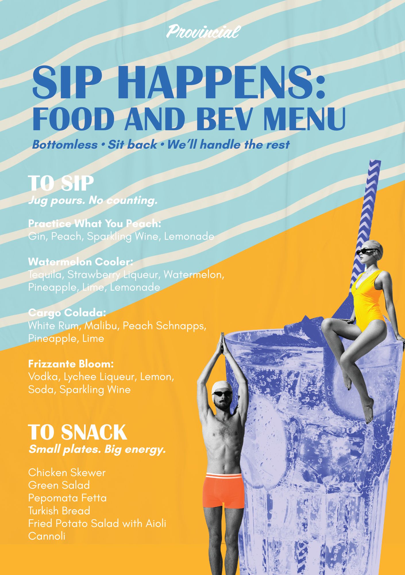 We’ve got you, upgrade your weekend and treat yourself to La Dolce Bottomless – two hours of endless jugs, wines & beers with nibbles to snack on.